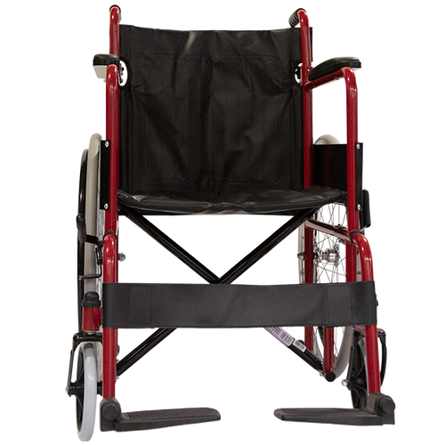 Silla de Ruedas Folding Compacta con Respado Plegable - Descansapies Desmontables y Brazos Fijos - Roja