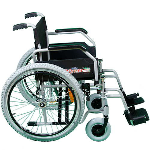 Silla de Ruedas Xtreme con Brazos FlipUp y Descansapies Abatibles y Desmontables - 20 pulgadas - Neumática - Negro Lodo